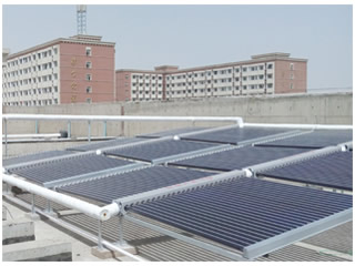 學校太陽能熱水工程組成部分:全玻璃真空管式集熱器、保溫水箱、連接管路、微電腦控制系統、水泵循環系統、輔助加熱系統等。